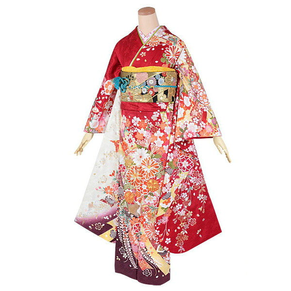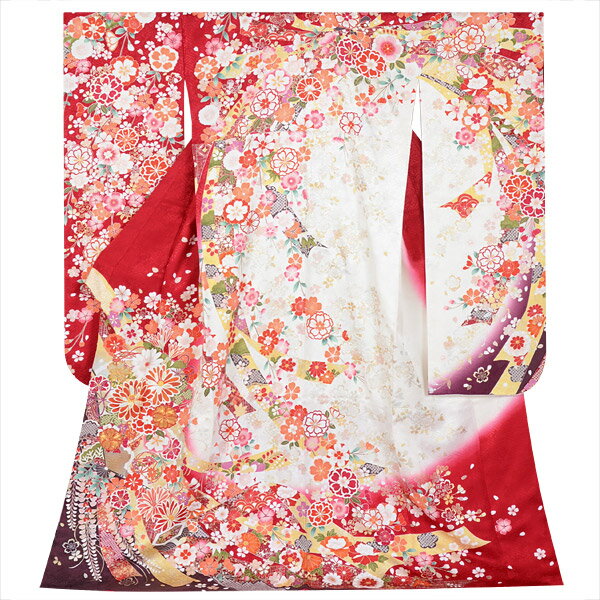 【振袖 レンタル】 結婚式 結納R1530 正絹 白赤 束熨斗花 振袖 レンタル フルセット ふりそで 振り袖 結婚式 披露宴 親族 卒業式 パーティー 結納 着物レンタル 貸衣装 女性 和服 往復送料無料