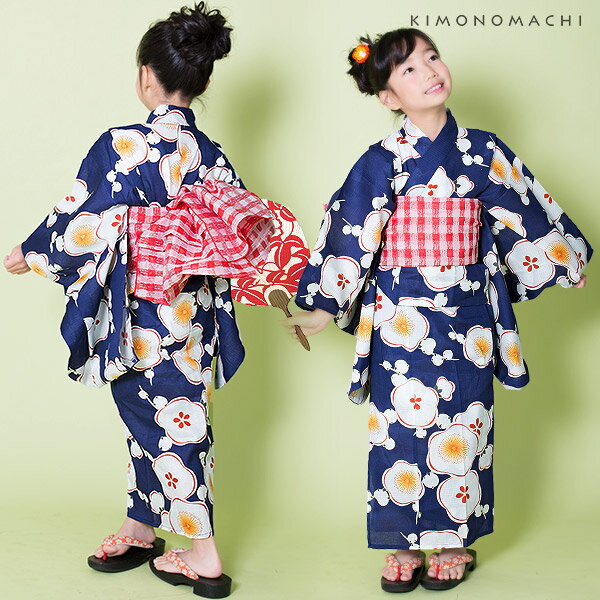 子供 浴衣単品「紺色 梅」110、120、130、140、150 cm キッズ ジュニア レトロ 古典柄 女の子 子ども 浴衣 変わり織り 子供浴衣 こどもゆかた 夕涼み会 夏祭り 花火大会 紺 ネイビー 赤 梅 花柄【メール便不可】ss2512kkd10