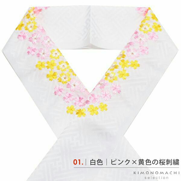 七五三 女の子 刺繍半衿 単品「桜の刺繍 白地・赤地/ピンク×黄色・ピンク・赤×ピンクの刺繍 全4種」 日本製 子供用 刺繍半襟 七五三小物 女児 <H>【メール便対応可】
