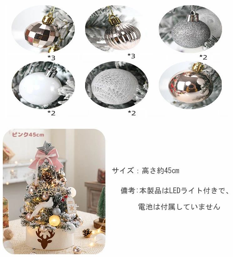 商品説明 カラー サイズ 素材 4色 写真参照/下表の備考欄をご確認ください PVC 補足説明 【サイズ】 レット高さ約45cm レット高さ約60cm ピンク高さ約45cm ピンク高さ約60cm 備考:本製品はLEDライト付きで、電池は付属していません 北欧風でリアルを追求した高い質感。 豊富なオーナメントがセットで付いているので、届いてすぐに飾り付けできます 直射日光にはご注意下さい。色あせの原因になります。 ハンドメイドの特性上、形に多少の個体差がございます。 備考 ※なるべく実物に近い色を画像で表現していますが、撮影環境・お使いのディスプレイなどの条件によって多少の誤差が生じる場合がございます。 ※到着した商品に万が一不備等があり、ご満足いただけない場合はレビューご記載前にご遠慮なくお問い合わせください。当方スタッフが対応させていただきます。 ※たくさんのご購入誠にありがとうございます! 送料 ★運送業者:ヤマト運輸と佐川急便 ★3,980円(税込)以上のご購入で送料無料楽しめます。商品説明 カラー サイズ 素材 4色 写真参照/下表の備考欄をご確認ください PVC 補足説明 【サイズ】 レット高さ約45cm レット高さ約60cm ピンク高さ約45cm ピンク高さ約60cm 備考:本製品はLEDライト付きで、電池は付属していません 北欧風でリアルを追求した高い質感。 豊富なオーナメントがセットで付いているので、届いてすぐに飾り付けできます 直射日光にはご注意下さい。色あせの原因になります。 ハンドメイドの特性上、形に多少の個体差がございます。 備考 ※なるべく実物に近い色を画像で表現していますが、撮影環境・お使いのディスプレイなどの条件によって多少の誤差が生じる場合がございます。 ※到着した商品に万が一不備等があり、ご満足いただけない場合はレビューご記載前にご遠慮なくお問い合わせください。当方スタッフが対応させていただきます。 ※たくさんのご購入誠にありがとうございます! 送料 ★運送業者:ヤマト運輸と佐川急便 ★3,980円(税込)以上のご購入で送料無料楽しめます。