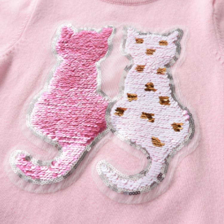 送料無料 ニット キッズ スパンコール 変色 長袖 ニットトップス 女の子 子供服 スウェット こども服 子ども服 ネコ 猫 無地 秋 冬 春 100cm 110cm 120cm 130cm 140cm 通園 通学 クリスマス プレゼント ピンク パープル 紫 猫 暖かい プレゼント 誕生日