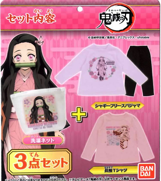 【鬼滅の刃】アパレルセット 洗濯ネット付き☆キッズ/ジュニア/子供/上下組+トップス+洗濯ネット3点入り/ハッピーバッグ◇バンダイ◇