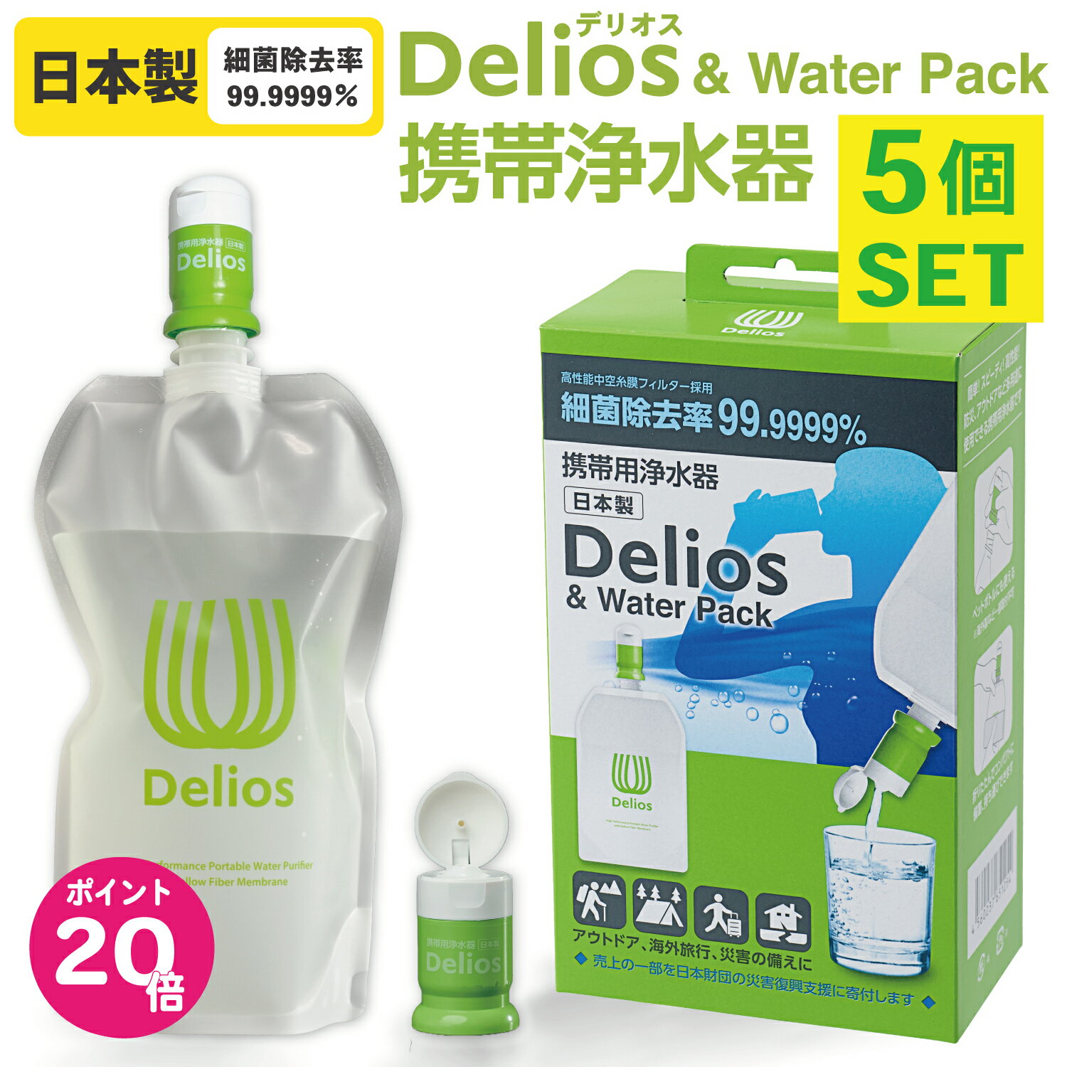 【5個セット】安心の日本製|テレビ番組で紹介! 携帯浄水器 デリオス &ウォーターパック1.2L 日本製 高性能 細菌除去 備蓄 防災用品 防災グッズ 濾過装置 飲料水確保 屋外 ろ過器 濾過器 アウトドア 登山 携帯用浄水器 災害時 非常時