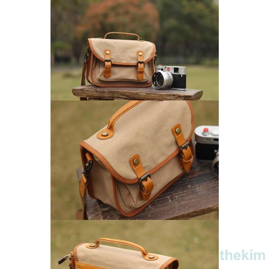 カメラバッグ ミラーレス一眼カメラバッグ カメラショルダーバッグ キャンバス 本革 レトロ 旅行 おしゃれ アウトドア撮影 ベージュ カーキ グレー 男女兼用