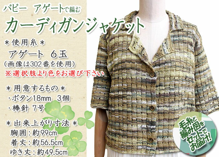 パピー カーディガンジャケット 着分セット(アゲート6玉・編図)