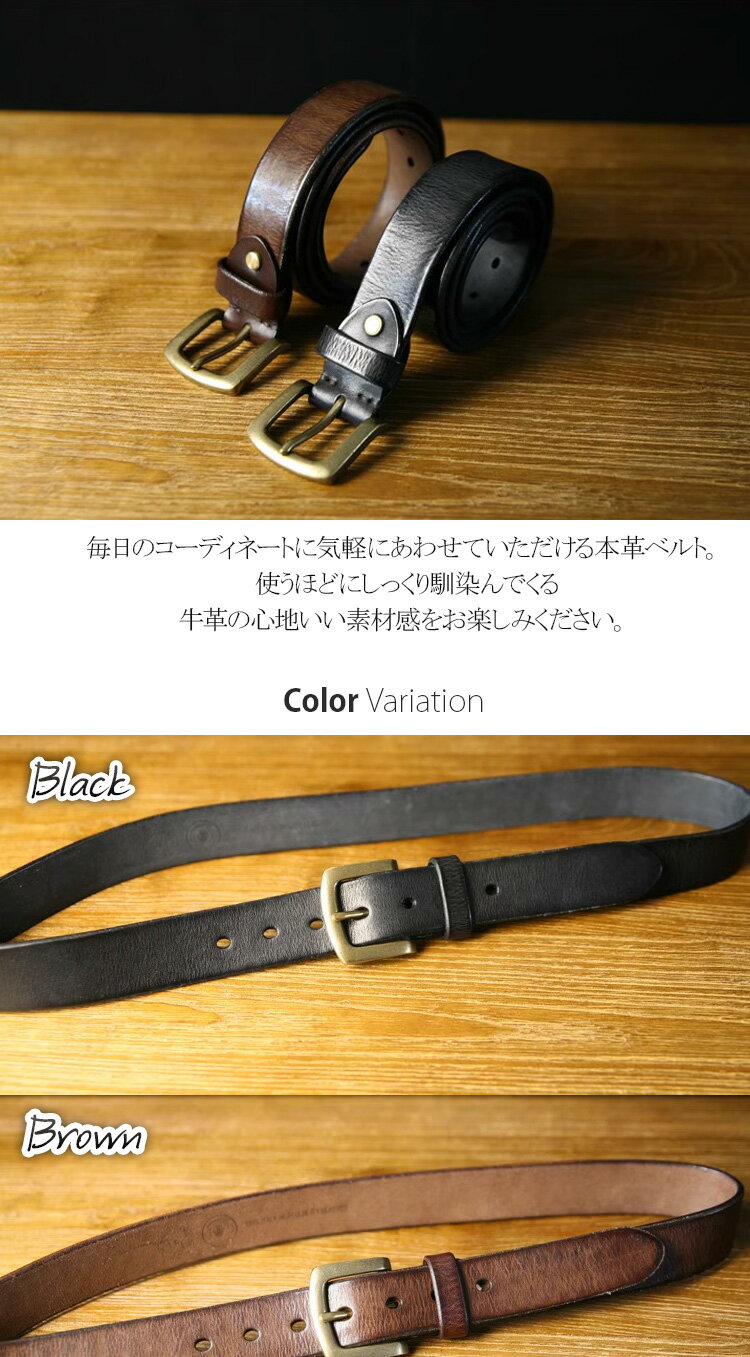 ベルト メンズ レザー 一層牛革 本革 バッグル カジュアル レザーベルト ビンテージ風 高級レザー 3.8cm幅 長さ120cm 長さ調整可能 穴あけポンチ付き