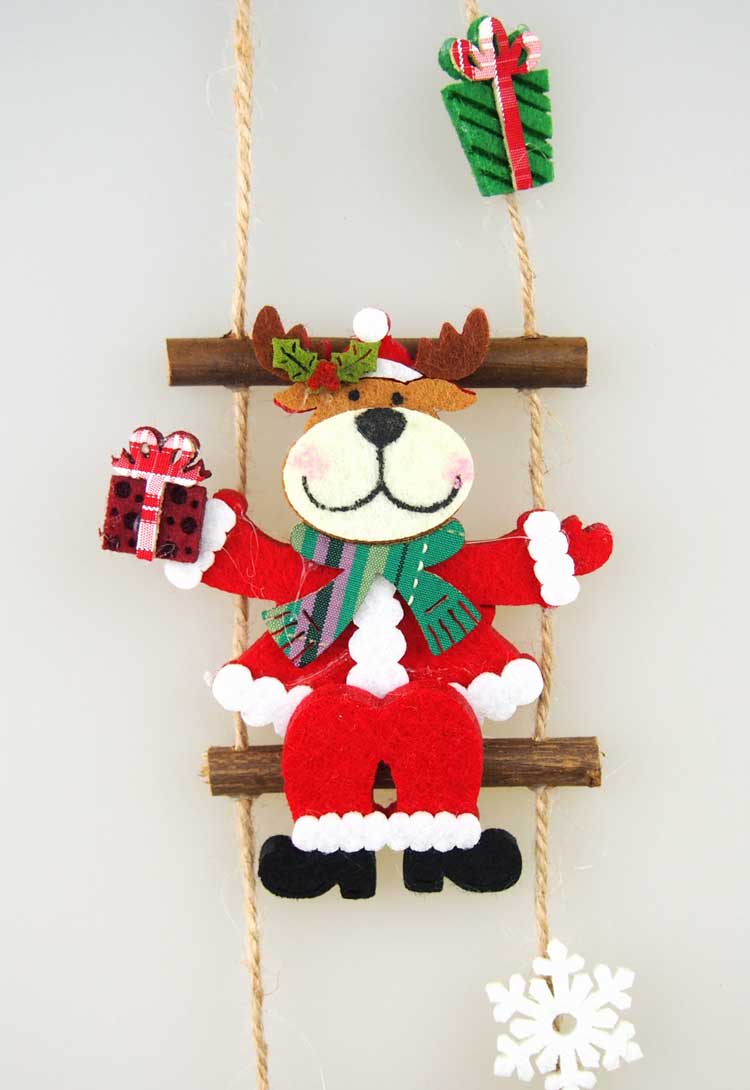 自然素材の木とフェルトを使用した見た目にも暖かみのあるハシゴトナカイフッキング! 高さのある場所に掛けて垂らすと気分はもうクリスマスムード一色! ひとつひとつのパーツがとても細かく丁寧に作られています。 海外工場から直接買い付け、生産中には直接品質チェックをして不良品を極力無くす努力をしています。 □サイズ:約 横幅10×奥行2×全長53cm (吊紐部分を含みます) ※ご注意 ●この商品は一つ一つが手作り商品の為、商品画像と色や形・大きさが若干異なる場合があります。 ●この商品は室内装飾用の為、屋外での使用・水に濡れると変色・色落ちする場合がありますのでご注意ください。自然素材の木とフェルトを使用した見た目にも暖かみのあるハシゴトナカイフッキング! 高さのある場所に掛けて垂らすと気分はもうクリスマスムード一色! ひとつひとつのパーツがとても細かく丁寧に作られています。