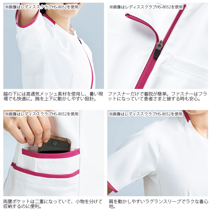 商品詳細 【Ath-medical(アスメディカル)】機能性と着心地を追求。アスレチックとメディカルを融合させた新感覚のメディカルウェア。アクティブな動きをサポートし、ベストパフォーマンスを引き出します。ファスナーだけで着脱が簡単、かつフラットな面を表側に使用して引っ掛かりなく安全な仕様に仕上げました。脇下は高通気メッシュ素材を使用し暑い現場でも快適。ラグランスリーブで腕を上下に動かしやすくストレスフリーな着心地です。 ■品名・品番 スクラブ(メンズ/男性) HS-8065・8066 ■カラー HS-8065.ホワイト×ミント HS-8066.ホワイト×ネイビー ■サイズ S M L LL BL 仕上り寸法表 ヌード寸法表 ■素材 ファインバラセアフィット(ポリエステル100%) ■仕様・特長 制菌加工 静電気帯電防止 ストレッチ 透け防止効果 吸水加工 速乾性 接触冷感性 工業洗濯可 後ろ襟下にストラップ留めフラップ付き 右腰にキーループ付き 両腰に二重ポケット付き ■着用シーズン オールシーズン ■同シリーズ レディススクラブ HS8050 ■おすすめコーディネート メンズパンツ PR5012 ■メーカー・ブランド オンワード・Raffiria(ラフィーリア) お届け情報 メーカーお取り寄せの商品です。※メーカー在庫依存のため、在庫切れの際はご容赦ください。ご注文後のメーカー在庫確認となります。 ■発送までの目安 メーカーに在庫が有る場合は、5営業日前後 ■配送方法 宅配便 【 半袖 病院 歯科 整体院 整骨院 リハビリ 介護 ケアワーク メディカル 制服 ユニフォーム おしゃれ 】