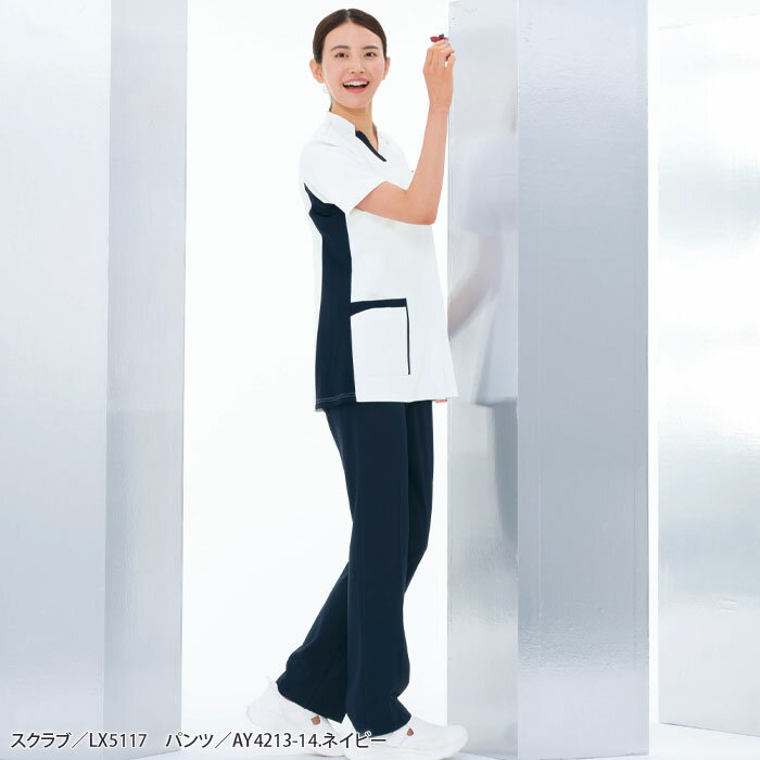 ナガイレーベン スクラブ 医療 白衣 前開き LX5117 男女兼用 ジップアップ ファスナー開き ニット素材 半袖 Naway ナース 病院 メディカル 制服 ユニフォーム