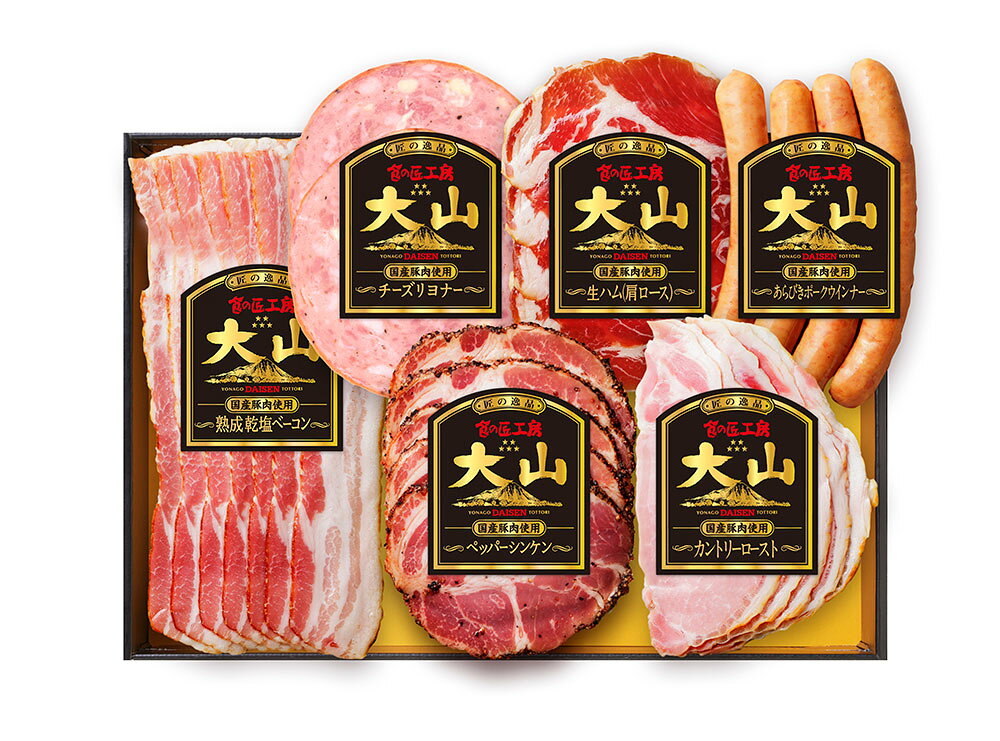 国産原料肉を用いた、こだわりの逸品。大山ハム自慢の6種セットです。■内容量:熟成乾塩ベーコン80g、ペッパーシンケン72g、カントリーロースト72g、チーズリヨナー36g、生ハム(肩ロース)40g、あらびきポークウインナー120g■賞味期限:冷蔵30日◆ギフト対応:のし対応を承ります。 ◆メーカーより直送の為、他商品との同梱不可 ◆配達指定日について お歳暮品となりますので、商品によって発送期間が異なります。予め商品ページに記載の日程をご確認ください。 通常、11月上旬より順次発送致します。11月5日から12月26日までの期間で配達指定日・配達時間のご指定がある場合は、「ストアへのご要望」欄にご記載ください。ご要望に添えない場合は、最短にて発送させて頂きます。 ◆北海道・沖縄にお届けの場合は別途送料550円加算させて頂きます。 ◆納品書等はお付けしておりません。ご希望の場合、備考欄にご記入ください。