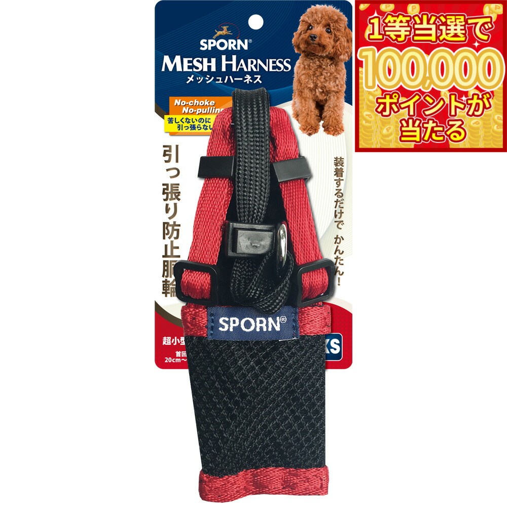 【当店限定Wイベント!最大2000円OFFクーポン&1等最大10万ポイント】SPORN メッシュハーネス XS レッド しつけ 引っ張り防止 呼吸が荒くなりがちな短鼻犬に特におすすめ! クッションスリーブが優しく保護