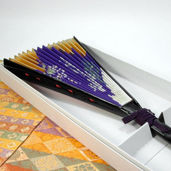 京都製の中啓(ちゅうけい)です。 親鸞聖人誕生800年を記念して製作された中啓です。 表が紫をベースに松に鶴、裏は赤をベースにしています。 中啓のほとんどが赤骨に対しこちらは黒骨なので、葬儀・中陰用にも使用できますので現在でも法事・法要の記念品にされることが多いです。また、記念中啓として元々の意匠では黒塗り骨を使用していますが、朱塗り骨、溜塗り骨に変更することも可能です。 1尺は、骨の形を中啓→雪洞または扇子に変更可能。(1尺5分は中啓→雪洞のみ変更可能) 専用箱にお入れしてお届け致します。 仕様和紙製 扇骨は竹製(カシュー漆塗り) サイズ全長 1尺(約30.5cm) のし対応しています。 外装紙箱入 ※専用桐箱はこちらで別途ご購入下さい 【中啓 京都 扇 僧具 寺院仏具 記念品】