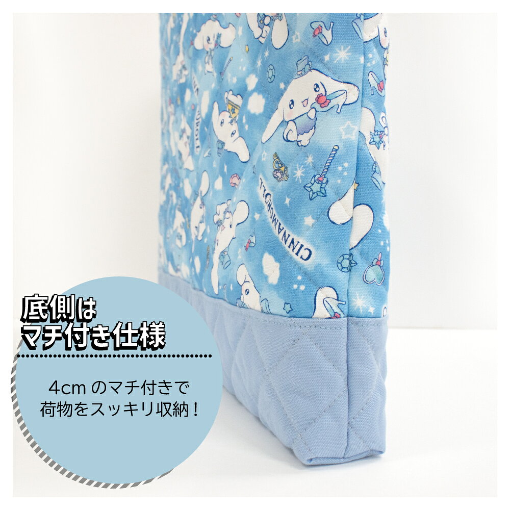 【シナモロール】【大きいサイズ】レッスンバッグ ループ付き キルティング 手提げ かばん トート 入園 入学 通園 通学 キャラクター グッズ かわいい キルト 生地 マチあり 通学バッグ マチ付き 女の子 子供 キッズ【シナモン サンリオ】