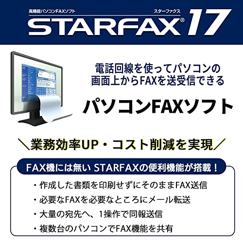 特殊:B0B527Q4JJコード:4956487012004ブランド:メガソフトパソコン上で動くパソコンFAXソフト。Windows11対応の最新版。3台のクライアントパソコンで運用可能なお得なパック 作成した書類を印刷せずにそのままFAX送信。時間短縮&印刷コスト削減に。送信元ごとに自動で必要なところへ転送。外出先でも安心。大量の宛先へ、1操作で同報送信。FAX DMもおまかせ。複数台のパソコンでFAX機能を共有。データの一元管理で信頼性の高い運用に。発送サイズ: 高さ19、幅13.6、奥行き1.4発送重量:80FAX ファックス ファクス FAXソフト パソコンFAX FAX送受信 インターネットFAX efax モデム FAXモデム インターネットファックス