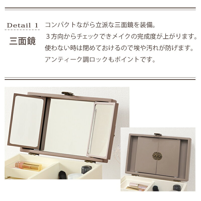 コスメボックス コスメケース 大容量 木製 コスメ収納ケース 化粧品 収納 コンパクト 鏡付き 完成品 ミニドレッサー ホワイト かわいい コスメ収納 メイク収納 メイクBOX 白 化粧道具 鏡台