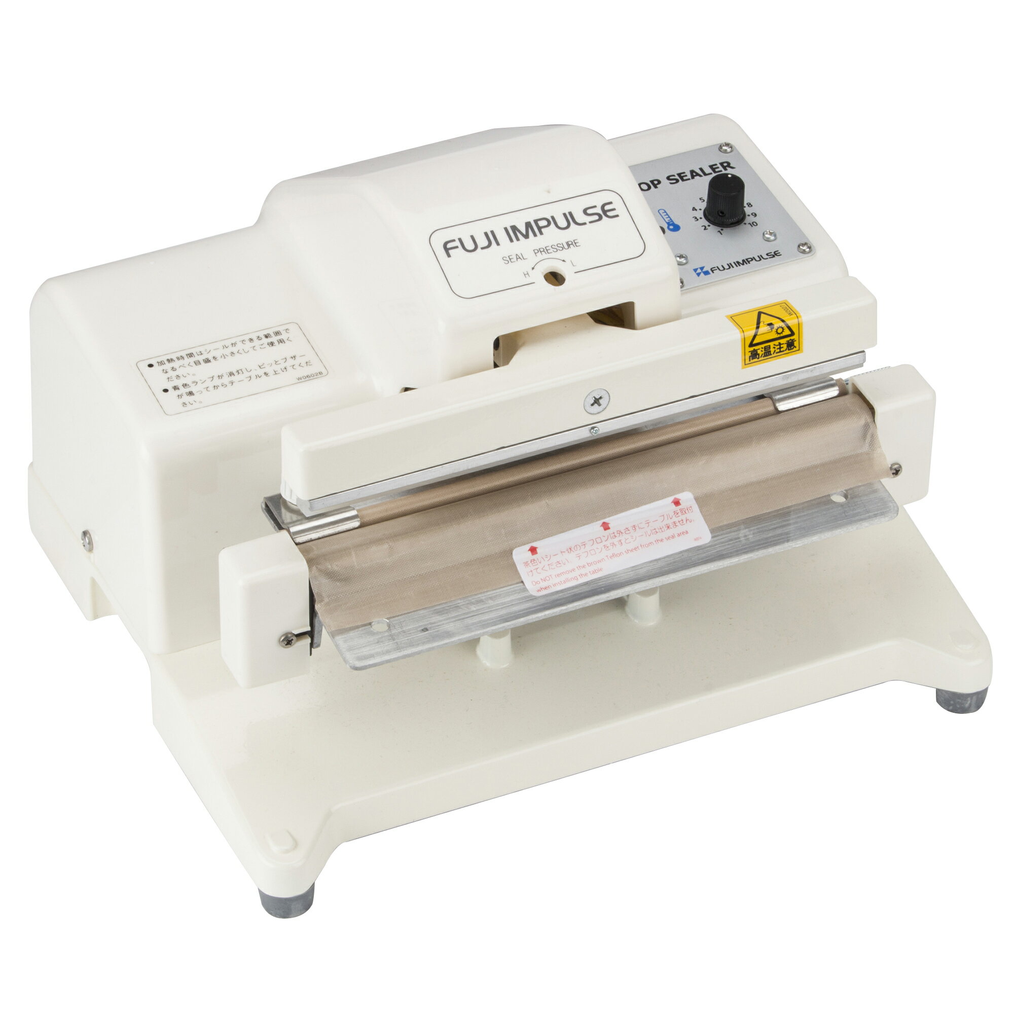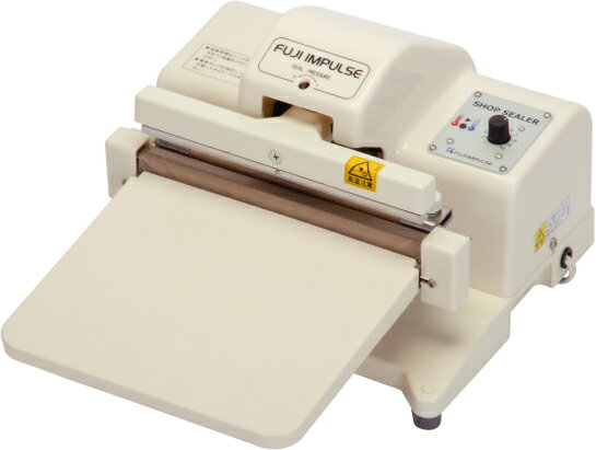 メーカー富士インパルスサイズ本体:幅286mm×奥行376mm×高さ198mm テーブル:幅218mm×奥行180mm機械重量5.2kg電源100V消費電力390Wシール方式片側加熱式(シール部の下部にヒーター線があります)シール長さ200mmシール幅5mm または 2mm加熱時間0.1〜1.6sec.対応する フィルムの厚み合計0.2mm以下カッター機構なし富士インパルス ショップシーラー FS-215 シール幅5/2mm×シール長200mm簡単な操作両手で袋を持ったまま、軽くテーブルを押し下げるだけで 強い加圧力が加えられ、丈夫で美しいシールができます。 使用する袋に応じた加熱時間を調整ツマミで設定します。加熱・冷却時間をランプの色表示と終了音でお知らせ加熱中はランプが赤色に点灯し、冷却中は青色に点灯してシールを美しく仕上げるために重要な"冷却時間"を目視で確認できます。 冷却が終了すると青色表示が消灯し、シール終了の合図音がピッと鳴ります。様々な用途に店頭や工場での個包装各種部品、食材などを少量ずつ包装するのに最適です。 軽量でコンパクトなボディで移動も簡単です。 丸みを持たせたデザインは店内に違和感なく設置し、お店の雰囲気、美観を損なわずお使いいただく事が期待できます。 主な導入業種事例 製菓・製パン(各種パン、各種菓子、珍味、カステラ)、麺類、薬、文具、本、雑誌、野菜、各種雑貨、金属製品、各種部品、各種食料品など容易なメンテナンスヒーターなどの部品はテーブルをはずして交換を行います。 テーブルは樹脂ナットで指で回すとはずせます。 附属の交換用ヒーターはパーツカバーの中に収納しています。製品附属部品リストヒーター2mm幅:2本 ヒーター5mm幅:2本 プラスドライバー:1本 テーブル:1個安全対策万一加熱タイマーの故障で異常加熱(連続通電)が発生した場合は約3秒で回路を遮断する装置を組み込んでいます。 電気的に遮断しますので、テーブルを押し下げて再び、シール加熱のマイクロスイッチがON状態になり加熱されますが、3秒で通電が切れます。