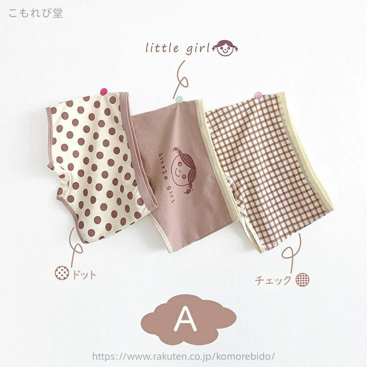 【送料無料】パンツ 女の子 キッズ ベビー 子供用 可愛い 下着 インナー 綿 柔らか 3点セット トランクス ブリーフ パンツ ボクサー・パンツ 入園 入学 四季通用 選べる2タイプ