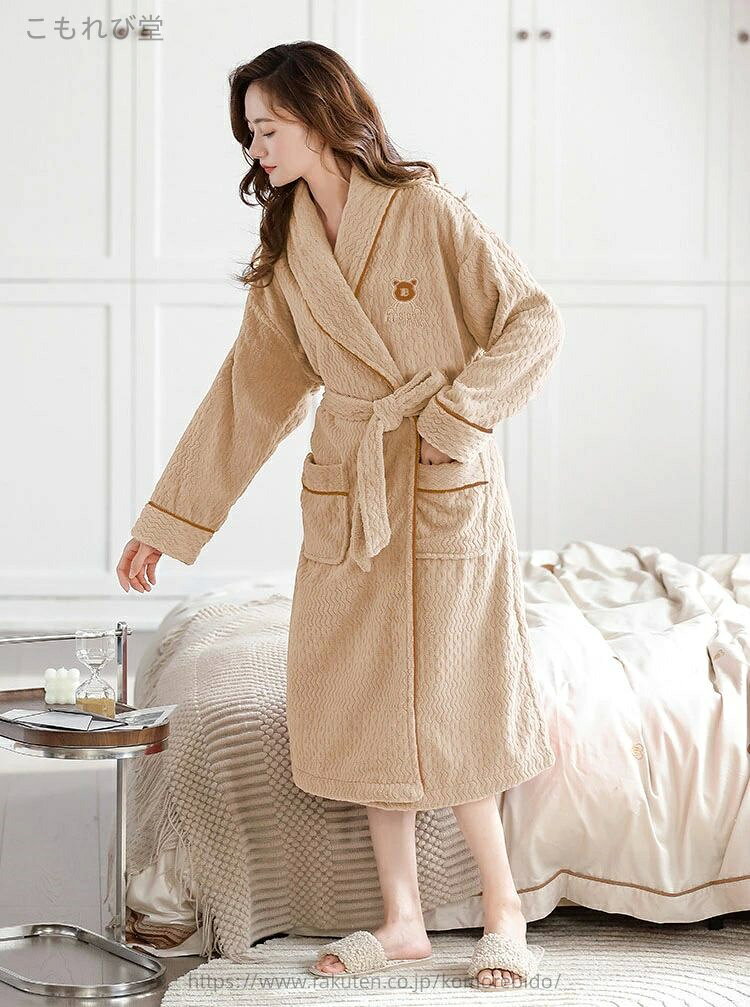 【送料無料】バスローブ パジャマ レディース もこもこ ふわふわ あったか ナイトローブ オシャレ レディースルームウエア きれいめ フランネル 裏起毛 厚手 防寒 暖かい ルームウエア