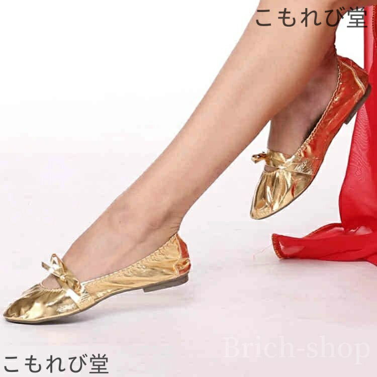 様々なダンスにご利用いただけるダンスシューズ。リボンのデザインがとても可愛くアクセントに!履き口がゴムなので足にぴったりフィットし、とても履き心地抜群です!ペタンコで履きやすいのでバレエ、ベリーダンスの他にもピアノの発表会にもお使いいただいています。靴底はゴム製でしっかりしていてすべり止め付きで安心です!底が厚めなので足に負担がかからずダンスに最適ですよ♪ サイズ35(22.5cm) 36(23cm) 37(23.5cm) 38(24cm) 39(24.5cm) 40(25cm) 41(25.5cm)サイズについての説明【サイズ】35(22.5cm) 36(23cm) 37(23.5cm) 38(24cm) 39(24.5cm) 40(25cm) 41(25.5cm)素材PUレザー TPRソール色ゴールド備考 ●サイズ詳細等の測り方はスタッフ間で統一、徹底はしておりますが、実寸は商品によって若干の誤差(1cm〜3cm )がある場合がございますので、予めご了承ください。●製造ロットにより、細部形状の違いや、同色でも色味に多少の誤差が生じます。●パッケージは改良のため予告なく仕様を変更する場合があります。▼商品の色は、撮影時の光や、お客様のモニターの色具合などにより、実際の商品と異なる場合がございます。あらかじめ、ご了承ください。▼生地の特性上、やや匂いが強く感じられるものもございます。数日のご使用や陰干しなどで気になる匂いはほとんど感じられなくなります。▼同じ商品でも生産時期により形やサイズ、カラーに多少の誤差が生じる場合もございます。▼
