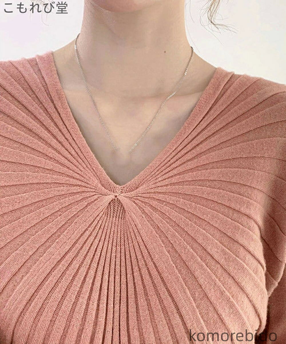 【送料無料】長袖リブニット Vネック レディース ミモレワンピ 膝丈下 秋冬 ワンピース ニットワンピース Vネック レディース ワンピース