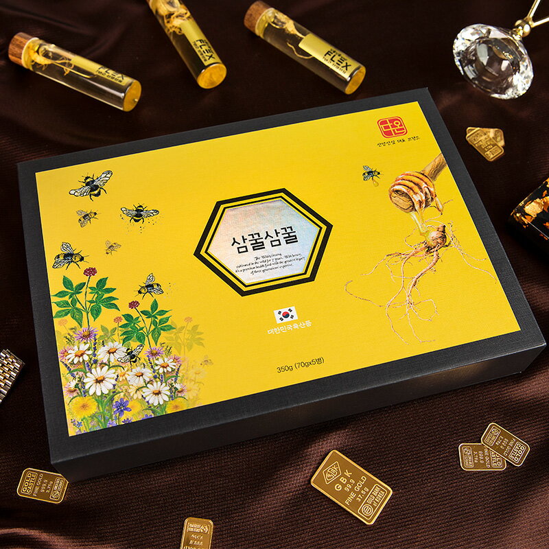 ダオン サムクルサムクル プレミアム高麗人参&ハチミツギフト(70g×5本セット)山参(さんじん) 7年根山参 韓国産はちみつ プレミアムギフト 健康スイーツ 心を込めた贈り物 はちみつギフトセット 自然の甘さ