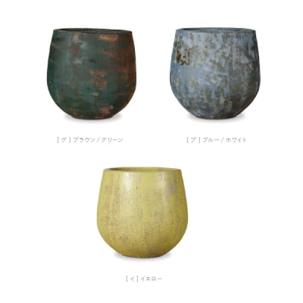 外寸×高さ 38×H38 口内寸 30 重量 15 容量 25 備考 防水インナー: LはPE30を、 MはPE25をセット可 対応プラ鉢: 尺鉢、 M 8寸対応 底穴あり リダンの特に「ブラウン/グリーン」 と 「ブルー/ホワイト」は 大変個体差が大きく、裏表でも色が大きく違う特徴があります。 これらは通常品となりますのでご了承ください。