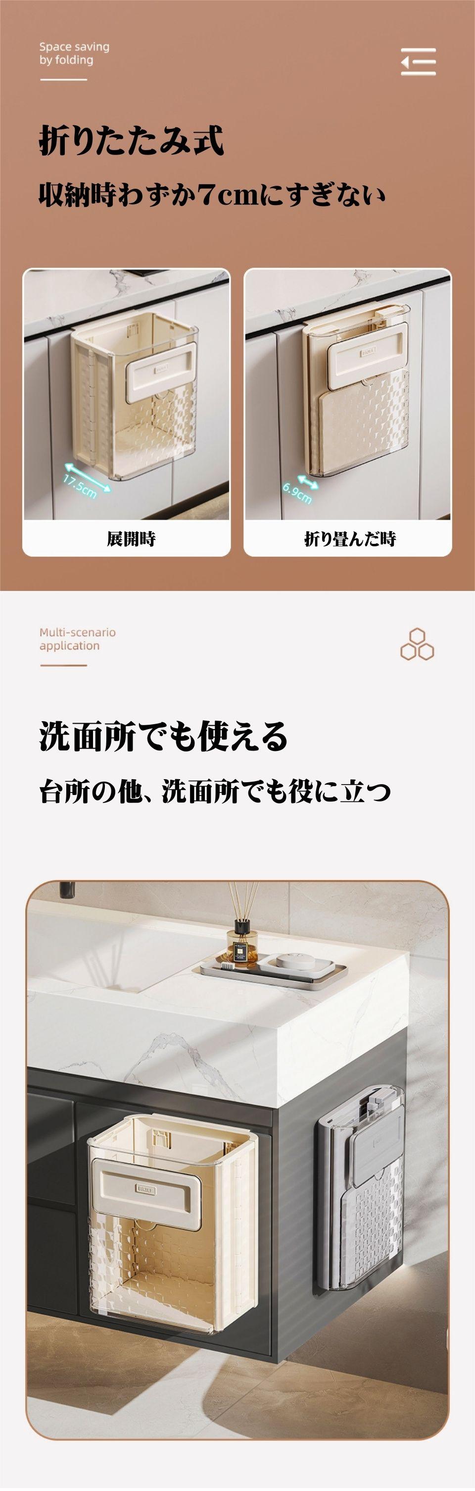 ゴミ箱 折りたたみ式 キッチン 透明 おしゃれ 省スペース 扉 引っ掛け フック 壁 貼り付け シール キャビネット ゴミ袋ホルダー付 生ゴミ用 シンク扉 台所 キッチン 洗面所 トイレ 大容量 浴室 車用 3カラー