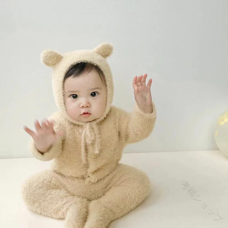 秋冬新作 帽子付きベビー ロンパース 退院着 出産祝い 66 73 80 90 100サイズ ベビー服 ロンパース カバーオール 赤ちゃん 女の子 男の子 長袖 ジャンプスーツ 韓国風 新生児 おしゃれ 春秋冬 防寒 もこもこ熊デザイン 可愛い プレゼント 写真撮影 お出かけ対応 キッズ用