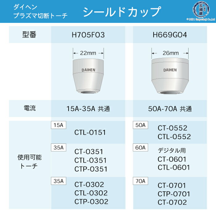 ダイヘン ( DAIHEN ) シールド カップ H705F03 プラズマ 切断 トーチ CT-0351 用 ばら売り 1個