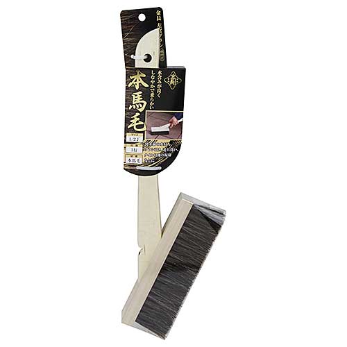 【特長】 ●馬の毛が水含みや腰の点で最も使いやすいです 【用途】 ●仕上げ前の水打ち(壁面に水分をつける事)、タイル目地の掃除 【仕様】 ●サイズ:1/2丁掛(約180x30mm) ●柄付き ●商品サイズ:幅390×高さ190×奥行き30mm ●重量:140g 【注意事項】 ※本来の用途以外に使用しないでください。 【納期】 メーカーに在庫があれば、納期約3〜5日(営業日)で出荷いたします 画像clickで各商品販売ページに進みます 左官ブラシ 本馬毛 柄なし 1丁掛 180x60 1丁半掛 260x60 2丁掛 360x60 左官ブラシ 本馬毛 柄付 1/4丁掛 90x30 1/2丁掛 180x30 1丁掛 180x60 1丁半掛 260x60