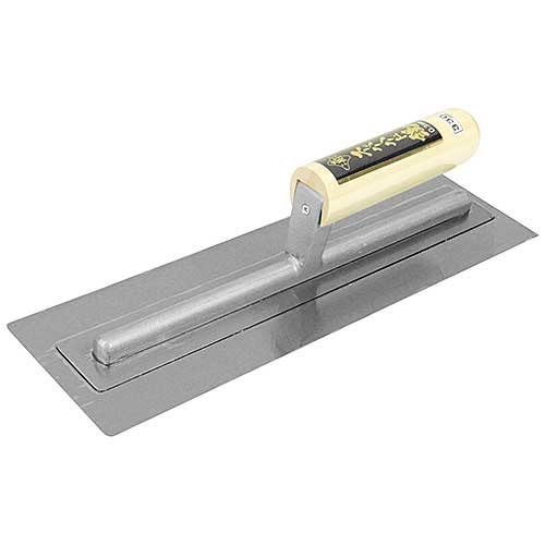 【特長】 ●通常の鏝と比べてハンドル部分をアルミダイキャスト一体型のハンドルと背金を使用しているので、強度、耐久性があります ●背金とコテ板部分はハードトランダム接着を採用し、樹脂を多く含んだ材料を使用した際のシンナー洗いなどが可能です ●アルミ合金背金で曲りにくです(当社従来比の約5倍) ●広い面積の仕上げ塗りにも効率よく塗れます ●角タイプです 【用途】 ●土間打ち後のならし作業 【仕様】 ●全長:330mm ●板厚:0.3mm ●商品サイズ: 幅100×高さ330×奥行き80mm ●重量:100g 【納期】 メーカーに在庫があれば、納期約3〜4日(営業日)で出荷いたします。 画像clickで各商品販売ページに進みます 金長 スーパーハード鏝 0.3 330mm 360mm 390mm