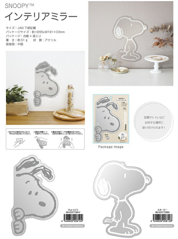 玄関やトイレなど、お好きな場所に貼りつけられます。 お部屋のアクセントにもなる、かわいいフェイス型のミラー ■サイズ ミッフィー:約H240×W158×D1.5mm うさぎ:約H200×W193×D1.5mm 約53g ひょっこり:約H259×W150×D2mm 約51g スヌーピー:約H238×W182×D2mm 約51g コジコジ/フェイス:約H184×W205×D1.5mm 約65g コジコジ/セリフ:約H192×W210×D1.5mm 約65g ■材質 アクリル ■生産国:中国 ■JANコード ミッフィー:4548626173433 すやすや :4548626173440 うさぎ:4548626234103 ひょっこり:4548626208104 スヌーピー:4548626208128 コジコジ/フェイス:4548626216321 コジコジ/セリフ:4548626216338 ※両面テープ付き さくらももこ 鏡,手鏡,ミラー,ハンドミラー,三面鏡,3面鏡,三面ミラー,3面ミラー,アニメ,文具,メイク,化粧品,小物,バッグ,人気,大人気,安い,便利,贈答品,お返し,通勤,通園,通学,プレゼント,ギフト,贈り物,誕生日,入学,新入生,新社会人,新生活,進学,小学生,中学生,高校生,大人,新学期,保育園,幼稚園,クリスマス,お祝い,ご褒美,喜ぶ,嬉しい,楽しい,おしゃれ,オトク,お得
