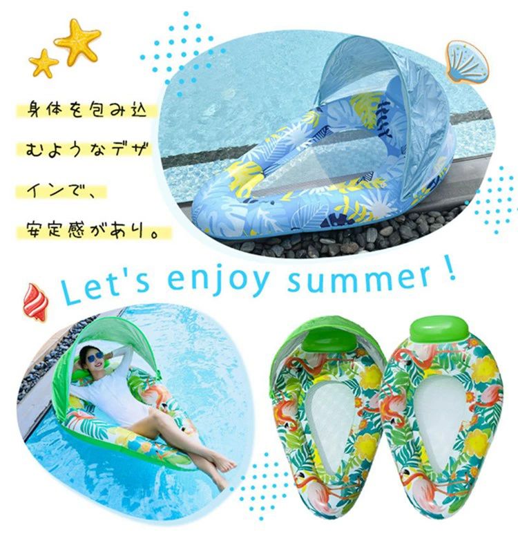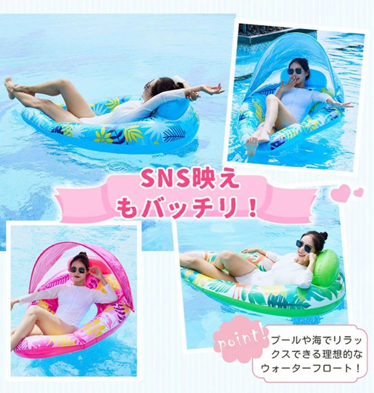浮き輪 水上 ウォーターフロートチェア ラウンジ チェア 取り外し可能なサンキャノピー エアフロート ウォーターベッド 背もたれ プール
