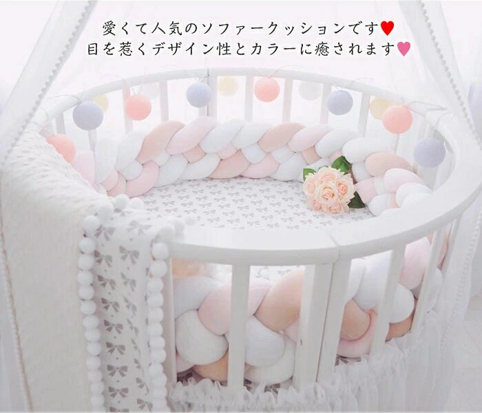 ベビーベッドガード 寝返り防止クッション 2M 4本編み ノットクッション ベビー ベッドガード クッション 赤ちゃん 結び目 部屋飾り 出産祝い プレゼント