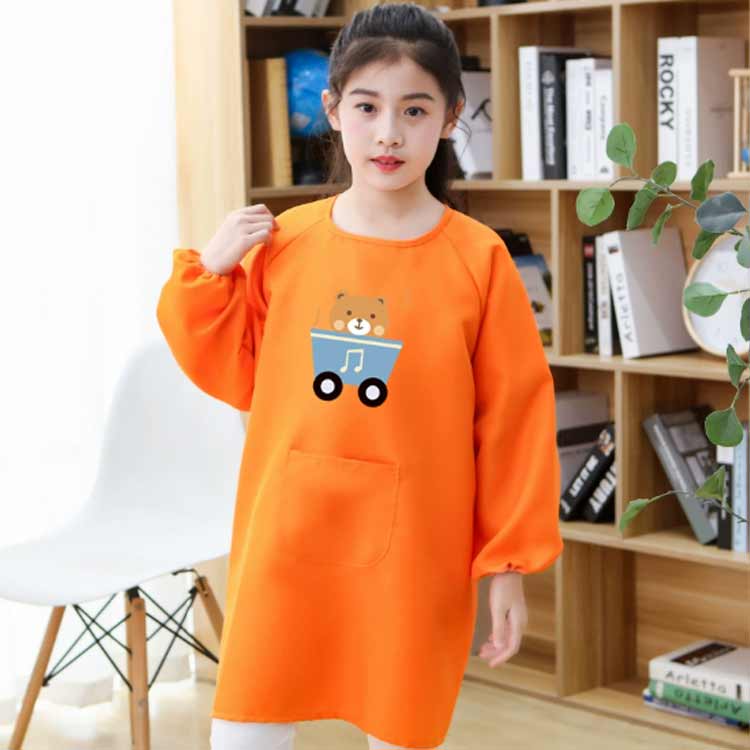 長袖 スモック 子供用 エプロン キッズ ポケット付き 撥水加工 汚れ防止 女の子 男の子 ベビー 幼児 こども 子ども 幼稚園 保育園 小学生 習字 書道 図工 図画工作 遊び着 シンプル 無地 お食事エプロン お食事 洗濯可能