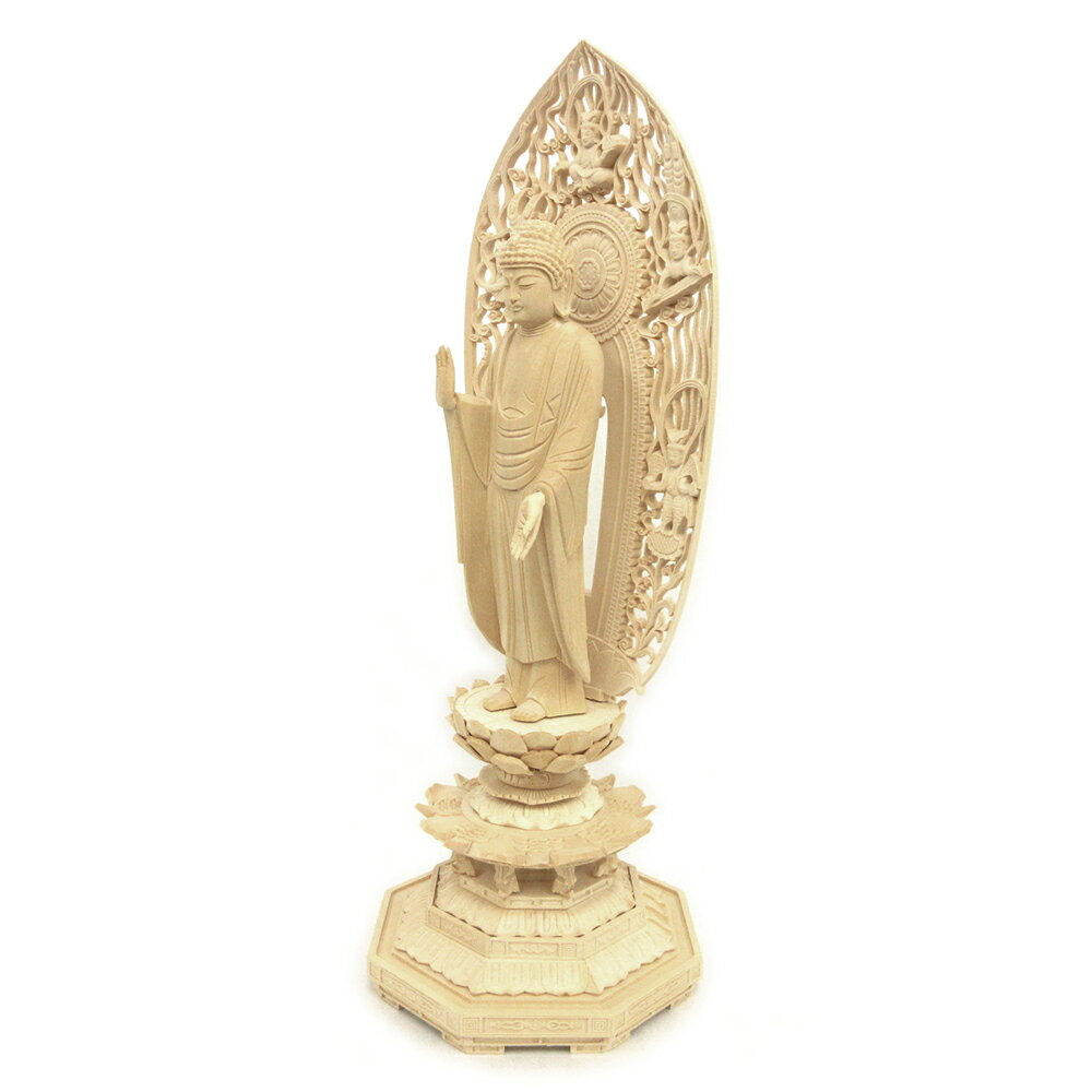 仏像 釈迦如来 立像 6.0寸 飛天光背 八角台 桧木 釈迦如来像 曹洞宗 臨済宗 天台宗 禅宗 本尊 お釈迦様 立釈迦 木彫り仏像 ひのき 檜 ヒノキ 桧 木製 シッダールタ 仏壇仏具 曹洞宗仏具 木製仏像 仏壇用品 木彫り