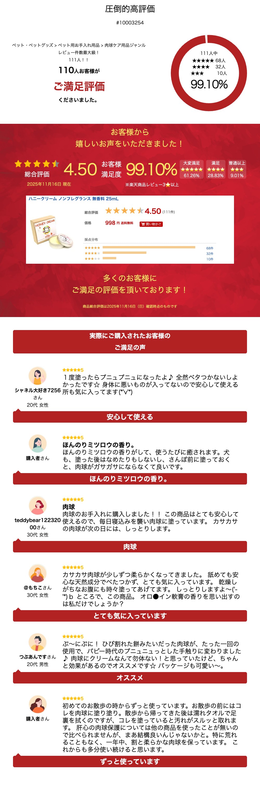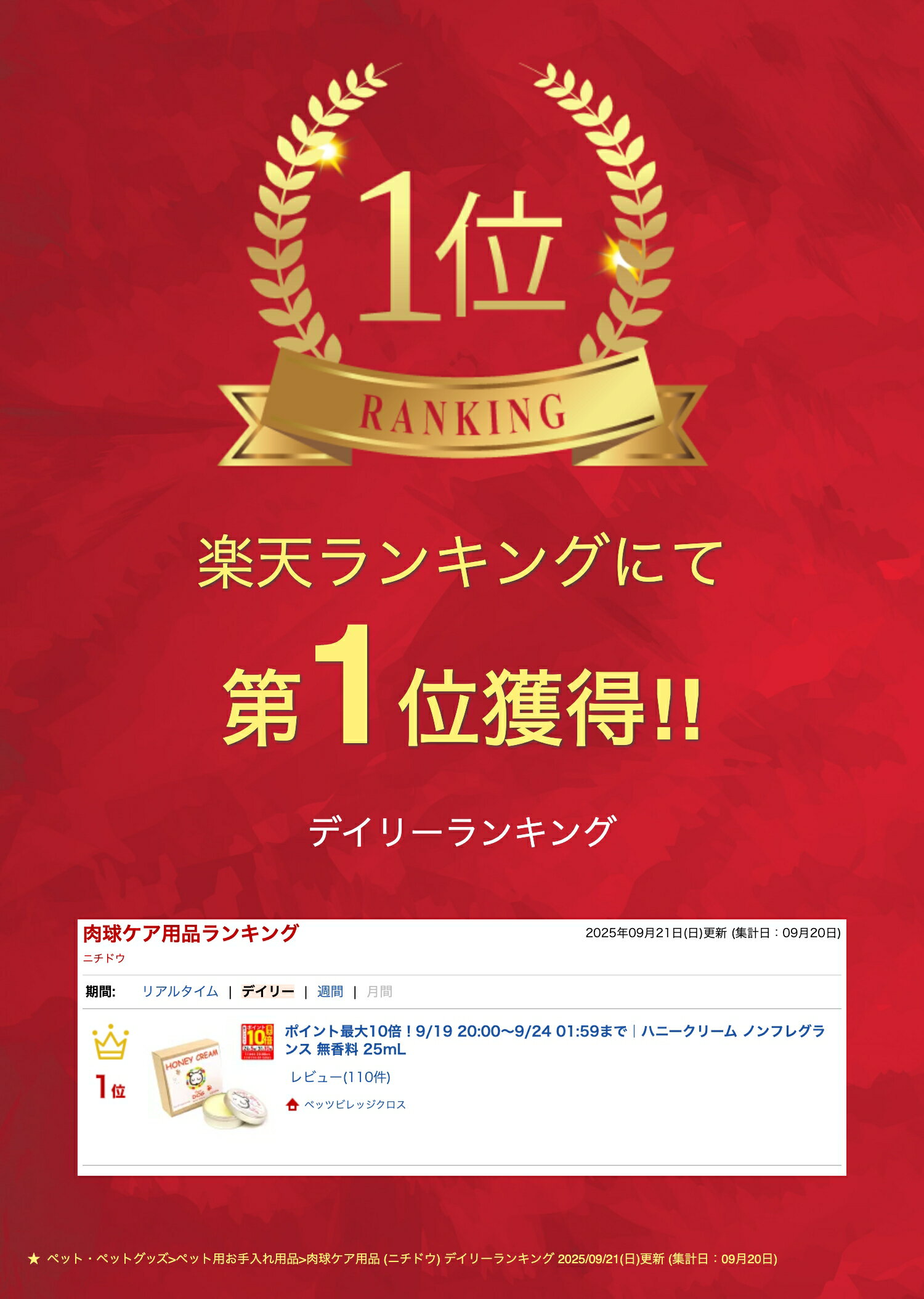災害などで避難する際、防災グッズとして準備しておくと非常に便利です。私たちのミツロウは、 ミツバチが巣造りの材料として腹部にある蜜蝋腺から分泌されるものです。 ハチミツ(ビタミンとミネラルの宝庫)や 花粉(生命の素の核酸{DNA・RNA}の宝庫)を食べたミツバチは ローヤルゼリーやプロポリス、そして蜜蝋を造りだします。 ミツバチが、子供たちを大切にそだてたり 貴重なハチミツを蓄えておくための巣やその蜜蓋は蜜蝋で造られています。 私たちのミツロウは、これをきれいに汚れを落とし 特殊な方法で不純物を取り除いたものです。 欧米では、ハチミツを巣ごと食する習慣があるため 蜜蝋は「食蝋(しょくろう)」として食卓を飾ります。 ミツバチが造り出す蜜蝋は天然物ですので栄養価も高く 食べることで自然の恵みを丸々享受することができるのです。 私たちのミツロウは、このようにミツバチたちによって造り出されたものです。 ミツバチたちが花蜜や花粉を集める方法や、ハチミツやローヤルゼリー、プロポリス そして蜜蝋を造りだす力はまさに生命の神秘そのものです。 ■ノンフレグランス(無香料) 香りに敏感なワンちゃんにご使用ください。 >;>ご購入はこちらから ■ラベンダー >;>ご購入はこちらから