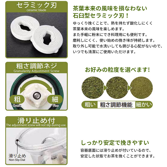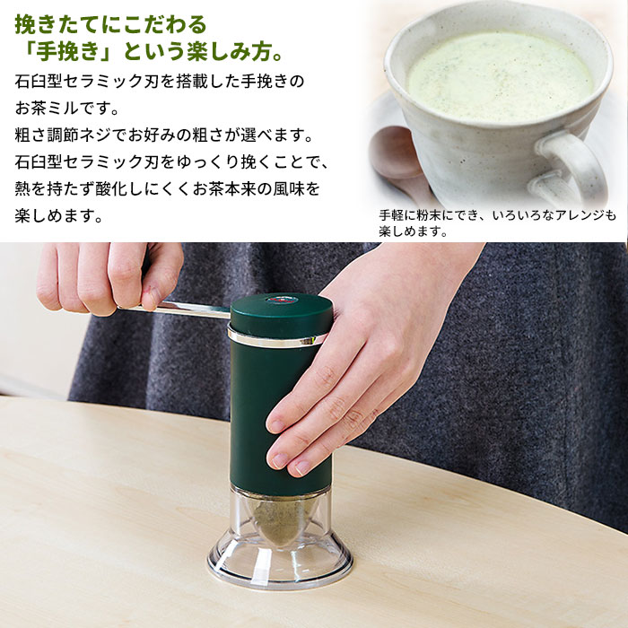 【ポイント5倍 11/21 10:00-12/05 09:59】お茶ミル 石臼型セラミック刃 手動 日本製 風味 粉末 お茶 茶葉 手挽き ミル おしゃれ MILL アウトドア 持ち運び
