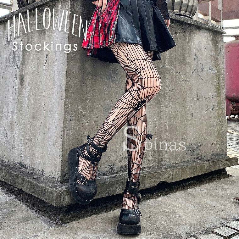 ハロウィン衣装にピッタリなクモの巣デザインの編みタイツ♪ レディース ストッキング 編みタイツ スパイダー クモ クモの巣 ロング セクシー ハロウィン パーティー 変装