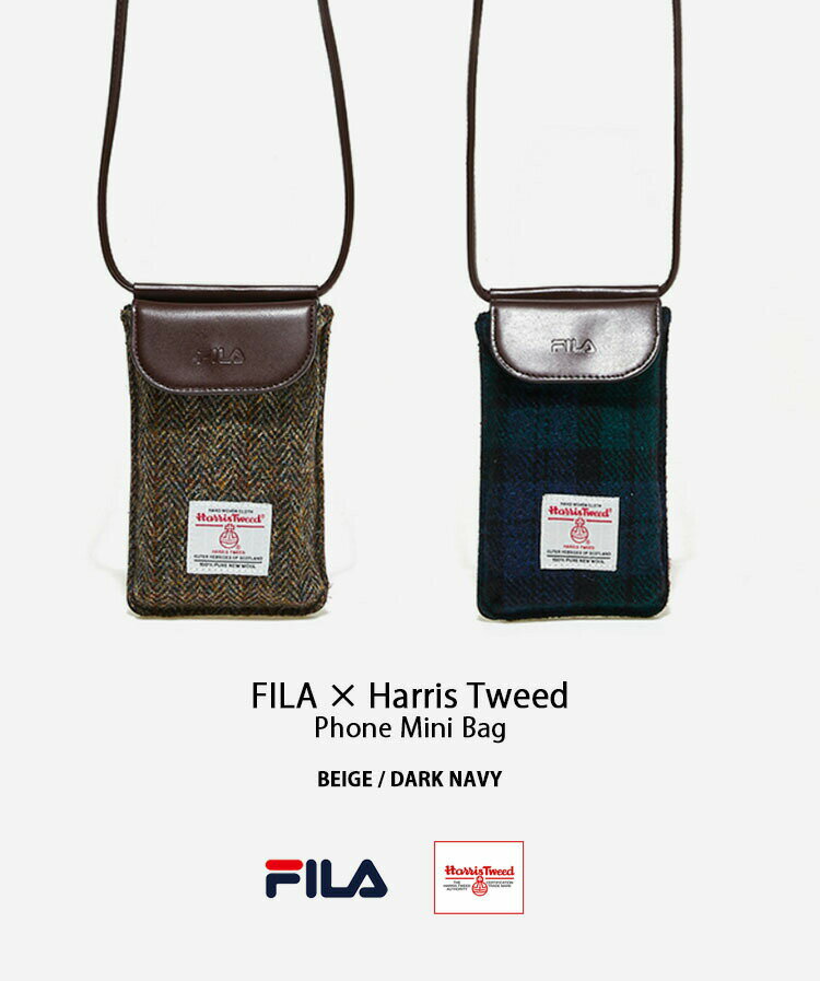 FILA フィラ HarrisTweed ハリスツイード スマホバッグ ポーチ PHONE MINI BAG FS3BCE6343X BEIGE DARK NAVY フォンバッグ ミニバッグ 肩掛け ショルダー ミニポーチ ベージュ ダークネイビー【中古】未使用品