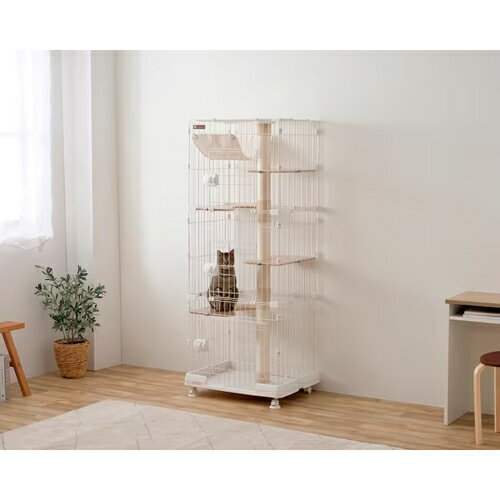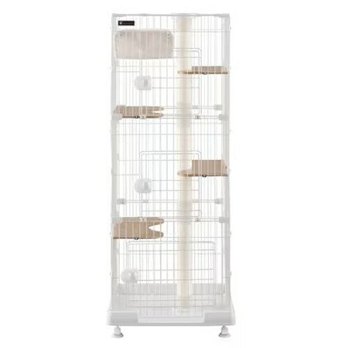 猫が楽しく過ごせるように考えられた3段タイプのキャットランドケージです。すっきり置けるスリムタイプです。屋根から床まで、支柱がつめとぎポールになっており、どの場所でも爪とぎができます。しっかり固定できるので安心です。4枚の棚板は段差がゆるやかで、上り下りがしやすくなっています。(子猫、シニア猫にも使いやすい設計です。)ハンモックが付いています。スムーズに開閉できるスライド扉です。移動に便利なキャスター付きです。お客様組み立てとなります。【仕様】■商品サイズ(mm):幅690×奥行545×高さ1,690■重量(kg):18.9■素材パネル:スチール(エポキシ粉体塗装)棚板:合成樹脂化粧パーティクルボード(メラミン樹脂)部品:ABS樹脂、ポリプロピレントレー:ポリプロピレンハンモック:ポリエステル100%■入口サイズ(約)上段・中段:320×350mm下段:460×405mm■内寸サイズ(約):615×475mm■棚板サイズ(約):267×465mm■棚板枚数:4枚■耐荷重(約):棚板1枚あたり6kg、ハンモック6kgメーカー:IRIS OHYAMA(アイリスオーヤマ)JANコード:4967576599955
