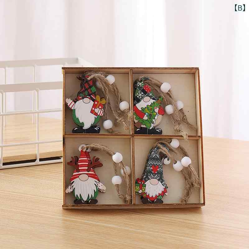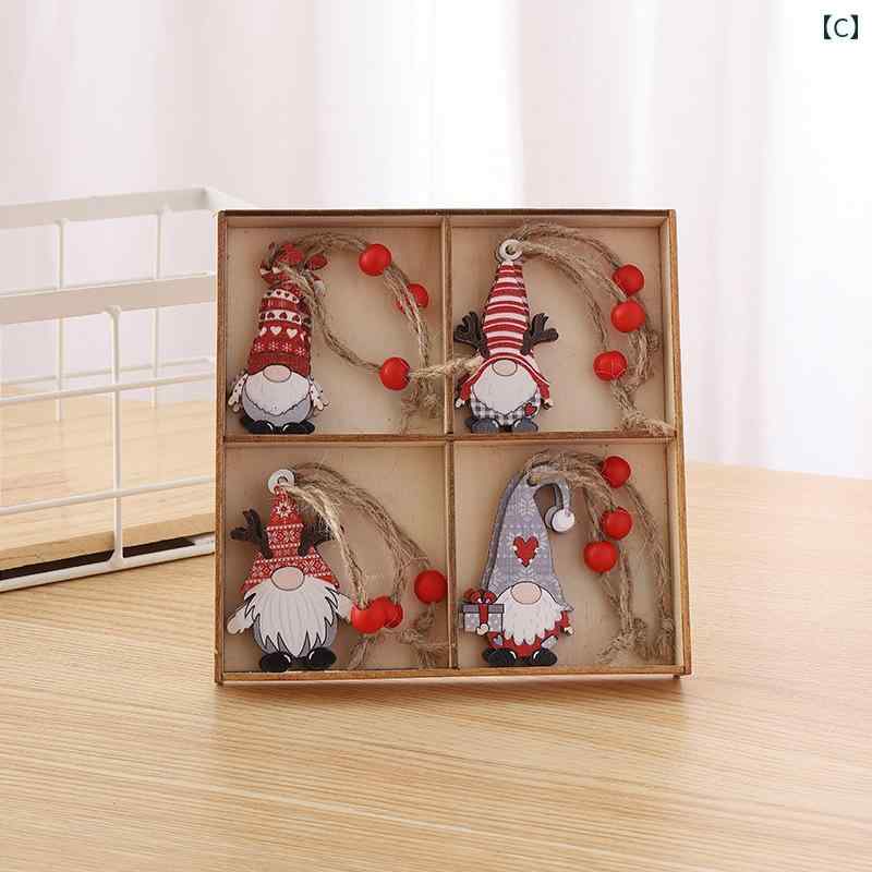 クリスマス 装飾 飾り付け 木製 顔のない 小さい オーナメント ペンダント ディスプレイ ツリー 12個 木箱 包装