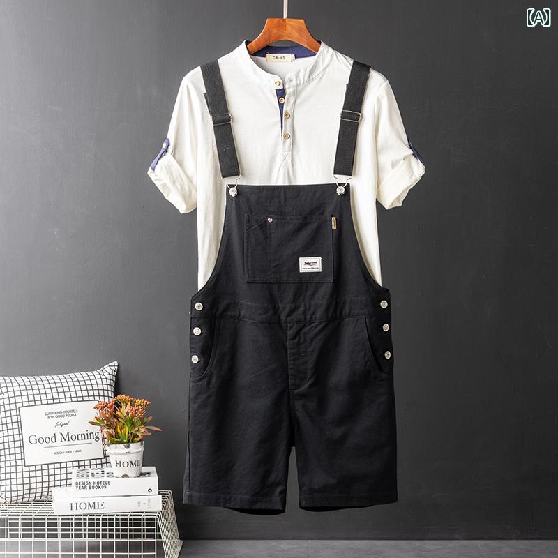 サスペンダーパンツ オーバーオール メンズ レトロ カジュアル ショートパンツ アーミーグリーン カップル スタイル 半ズボン イベント 衣装