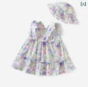 女の子 サマー ドレス おしゃれ ベビー ファッション 幼児 プリンセス スカート 花柄 森 コットン 紫 帽子 夏 Aライン 赤ちゃん ウェア パステル かわいい エレガント