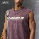 メンズ ノースリーブ 夏 ハイエンド 雲染め ウォッシュド ベスト アメリカン レトロ 星空 ファッション チョッキ カジュアル トップス トップステッチ 綿
