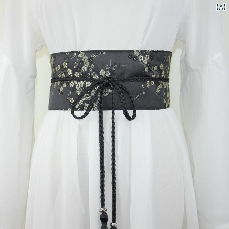 レディース ベルト 布製 帯 幅広 ワイド チャイナ風 和風 刺繍 梅花 梅 和装 和服 光沢カラー エスニック アジアンスタイル 帯紐 タッセル シルキー 高級感 上品 古風 帯飾り 幅8・10cm