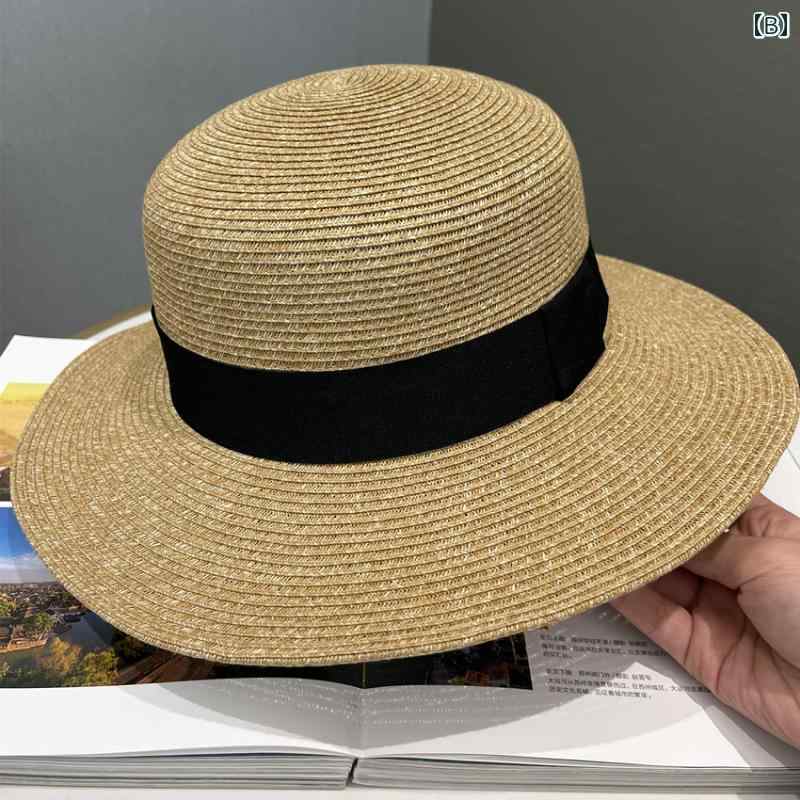 女の子 女性 夏 麦わら帽子 つば広 フラットトップ UVカット ワイドプリム サンハット 通気性 軽量 旅行 ガーデニング アウトドア レディース エレガント
