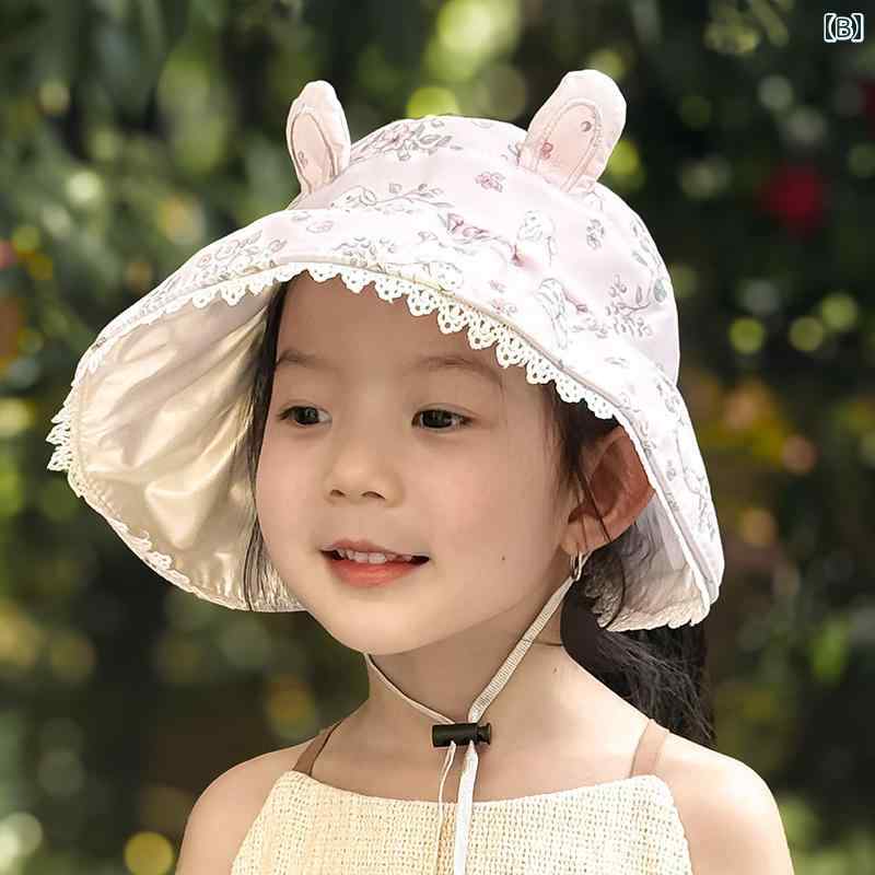 子供用 サンハット 女の子 つば広 夏 女の子 ベビー用 かわいい ガーリー レース うさ耳 調節紐 調節可能 バニー 外遊び 紫外線対策 花柄
