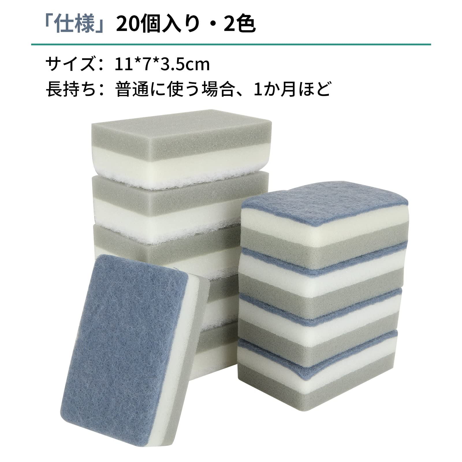 スポンジ 食器洗い・グレー 9.5*7*2.5cm OYScrubSpone20SGL230406fa・・:グレーNumbOfItems:20・スポンジ:11*7*3.5cm1個 素材:ナイロン不織布/ウレタンスポンジ・二層構造:強力な洗浄側は、タフな汚れに取り組むのに役立ち、頑固な汚れを効果的に除去し、非研磨性の黄色のセルローススポンジは、汚れや粒子を拭き取り、柔らかい肌触りと適度な弾力があり、少量の洗剤でも大量の泡ができます。・用途:スポンジ面:食器、金属調理具、プラスチック樹脂加工品、フッ素加工の洗浄 不識布面:ナベ、五徳などのコゲつき洗い。コゲ、こびりつき、油汚れ、茶しぶまで様々な汚れを簡単に洗い落とせます。・耐久性&長い持続:長持ちするように作られており、形状の維持がよく。使い始めはすこし固いですが、使っているうちにそれなりに柔らかくなりとてもしっかりとしたスポンンジです。・握りやすい:キッチンスポンジは手にフィットして握りやすい波型の形状、耐久性があり長持ちます 。掃除中に手に負担をかける心配が少なくなります!製品仕様 数量:台所用スポンジ20個入り サイズ:11x7x3.5cm/1個 カラー:グレー 素材:ナイロン不織布/ウレタンスポンジ 安全警告 ●初めての使用のまえには水を洗う。 ●使用後は水ですすいでください。すぐに乾き、臭いがつきません。 ●塩素系漂白剤は使用しない。 ●使用後は洗剤や汚れをよく落とし水気を切って、立てて保管するかスポンジ面を下にして保管する。 ●廃棄時はプラスチックゴミとして各自治体の定める方法に従って処理する。 ●火のそばには近づかない。 *第三者機関で抗菌効果を確認していますが、すべての菌の増殖抑制を保証するものではありません。