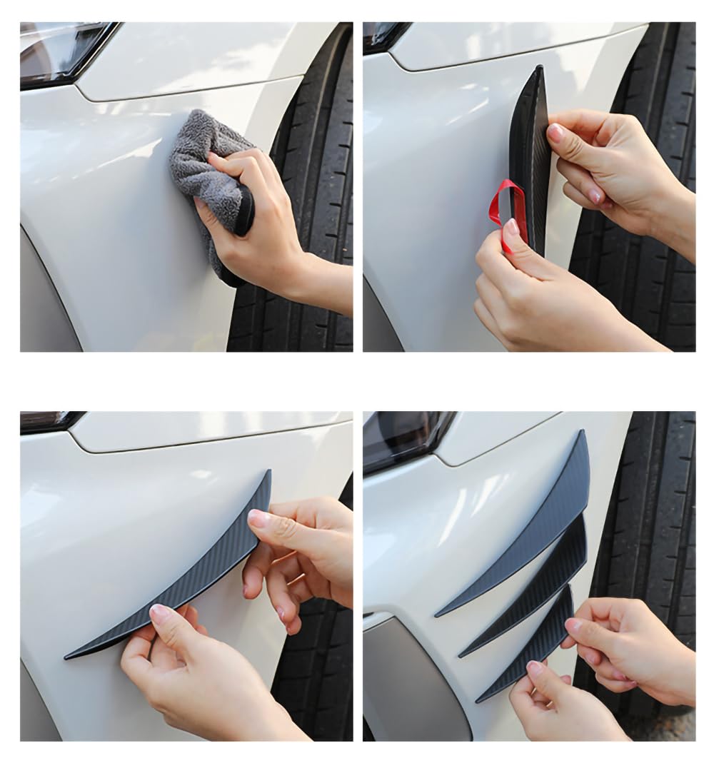対応車種ほとんどの車種に対応しております。全車種汎用・セット内容スポイラー×6。大中小3サイズ2セット。・材質ゴム製。ブラック(カーボン調)。衝撃に強い素材を採用し、ガリ傷隠しや傷付き防止できます。・取付が簡単両面テープで貼り付けて簡単に取り付けできます。・効用側面からやタイヤから跳ね上げた石でボディが傷つくことを ガードします。大中小3サイズ 片側3サイズ、左右合計6枚のお得なセットです。 L字型 両面テープ接着済 L字型断面です。底面には両面テープが接着済です リアルなカーボン柄 表側はリアルなカーボン調デザインで雰囲気を盛り上げます! 取り付け注意事項 風が当たる場所でもありますので、ビス等での補強をおすすめします。